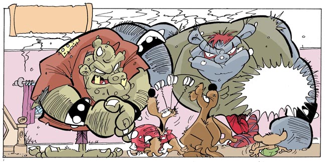 Let me explain: I've already finished drawing all the pages for the present Brabbles & Boggitt tale, but when I came to post page 35 I wasn't happy with panel number two---the one with the Trolls in. So I re-drew it.